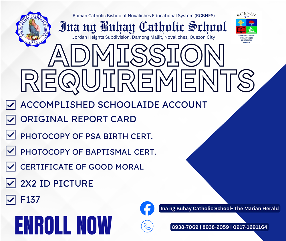 Ina ng Buhay Catholic School Address: Jordan Heights Subd., Damong Maliit, Novaliches Quezon City